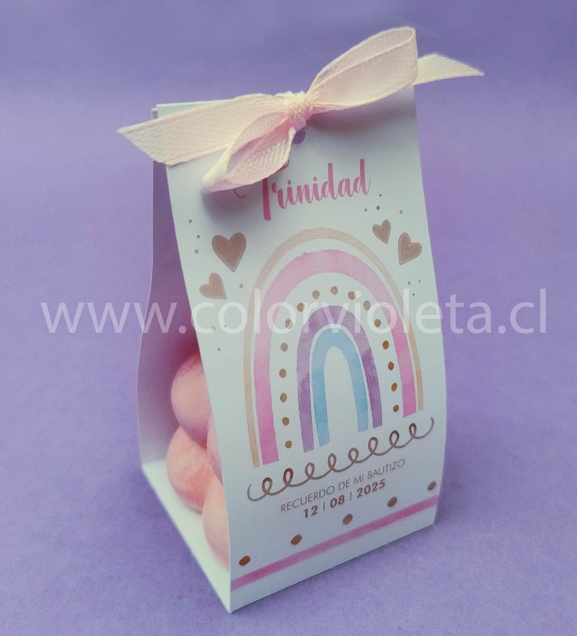 - Incluye cajita personalizada temática a gusto y cinta satín